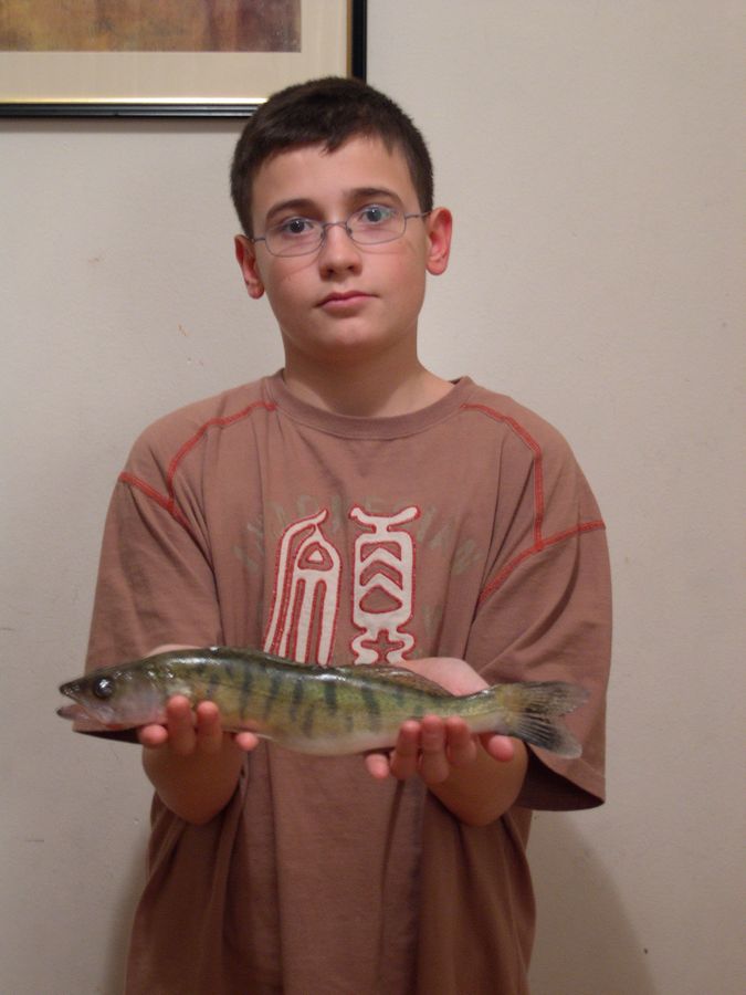 Simone si è appassionato di pesca e questo è il suo primo luccioperca.
